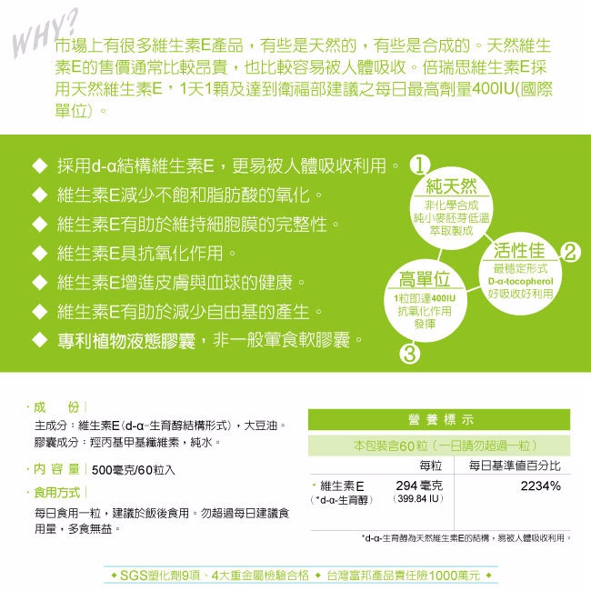 ● 非合成維生素E高活性好吸收