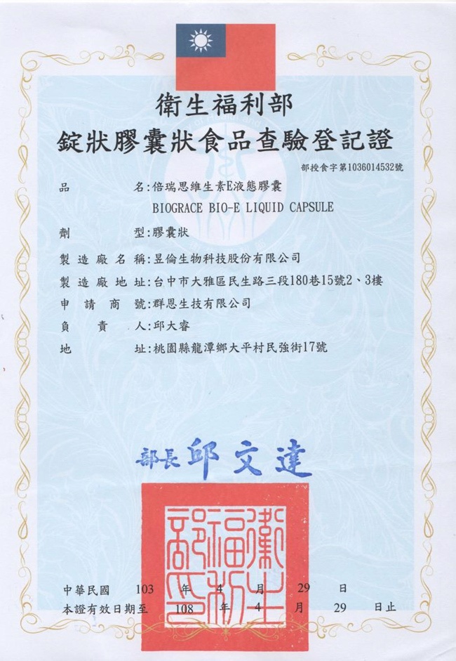 品名:【BIOGRACE倍瑞思】維生素E液態膠囊